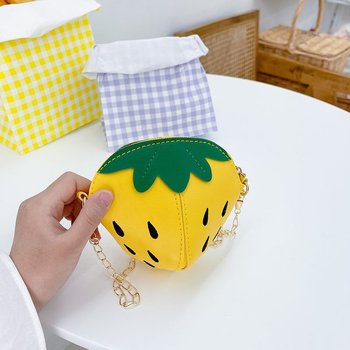 Kinderen Modieuze Pu Mini Rugzak Crossbody Tas Aardbei Ketting Ontwerp Schattige Portemonnee Unisex Fruit Trendy Rits Sluiting